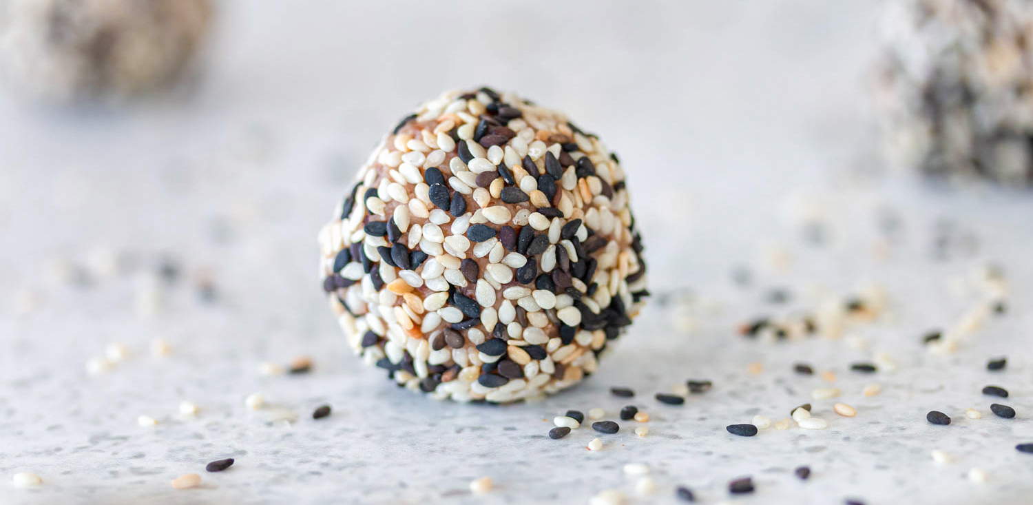 Den Apfel schälen und entkernen. Alle Zutaten in einen Mixer geben und mixen. Bei Bedarf wenig Wasser unterrühren, damit die Masse formbar wird. Aus der Masse 3–4 cm grosse Kugeln formen und in Sesam, Pistazien oder Fruchtpulver wenden. Die Kugeln können im Kühlschrank 1 bis 2 Wochen aufbewahrt werden.
