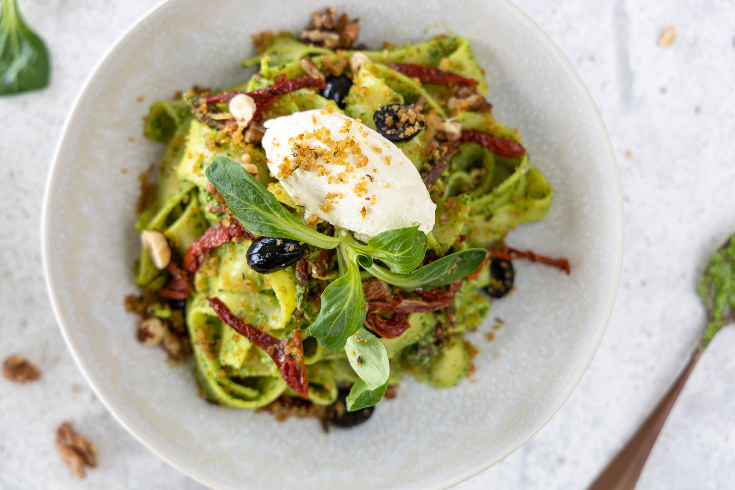 Pappardelle mit Nüsslisalat-Baumnuss-Pesto