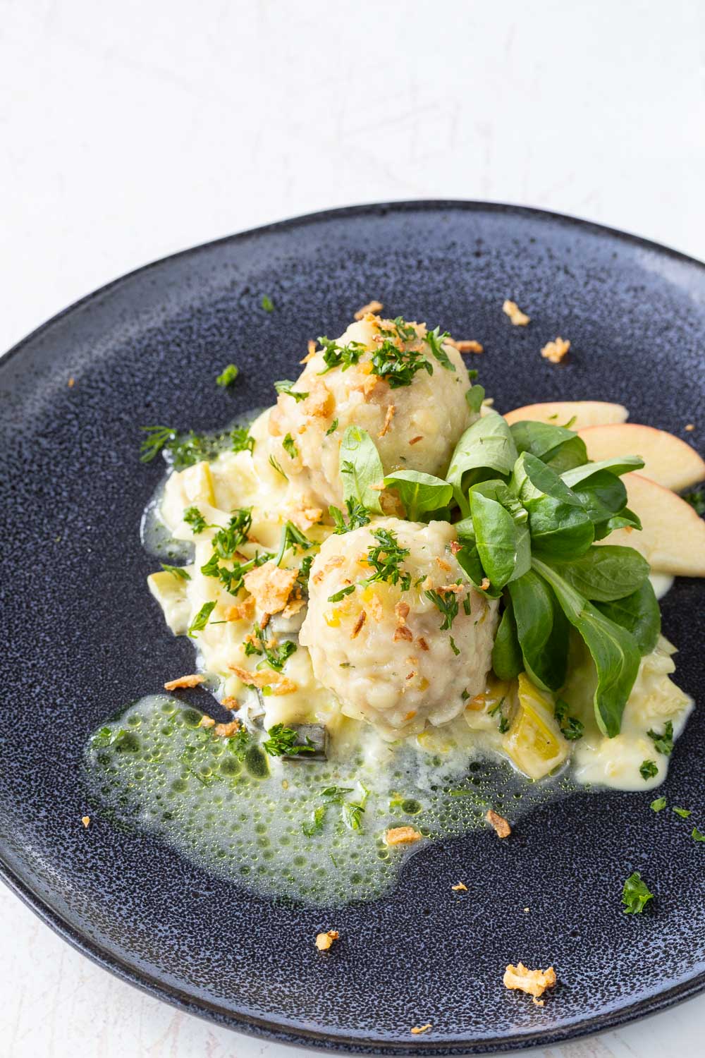 Semmelknödel mit Lauch-Wirz à la crème