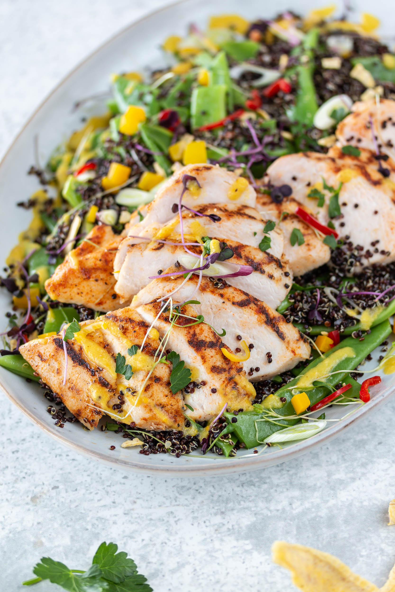 Quinoa mit Cocobohnen, Poulet und Ají-Amarillo-Sauce