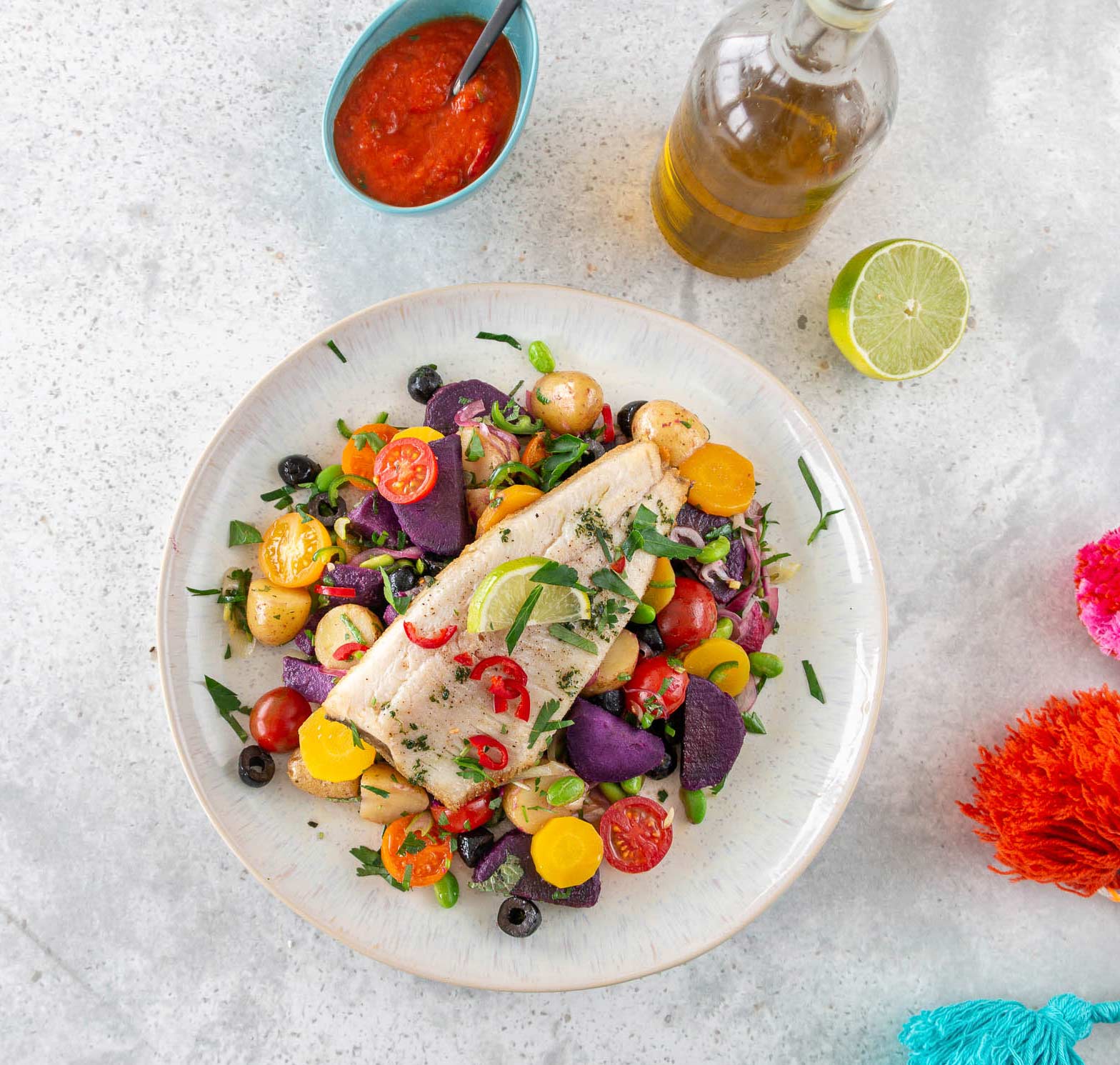 Bunter Kartoffelsalat, Forellenfilet mit Tomaten-Chili-Salsa